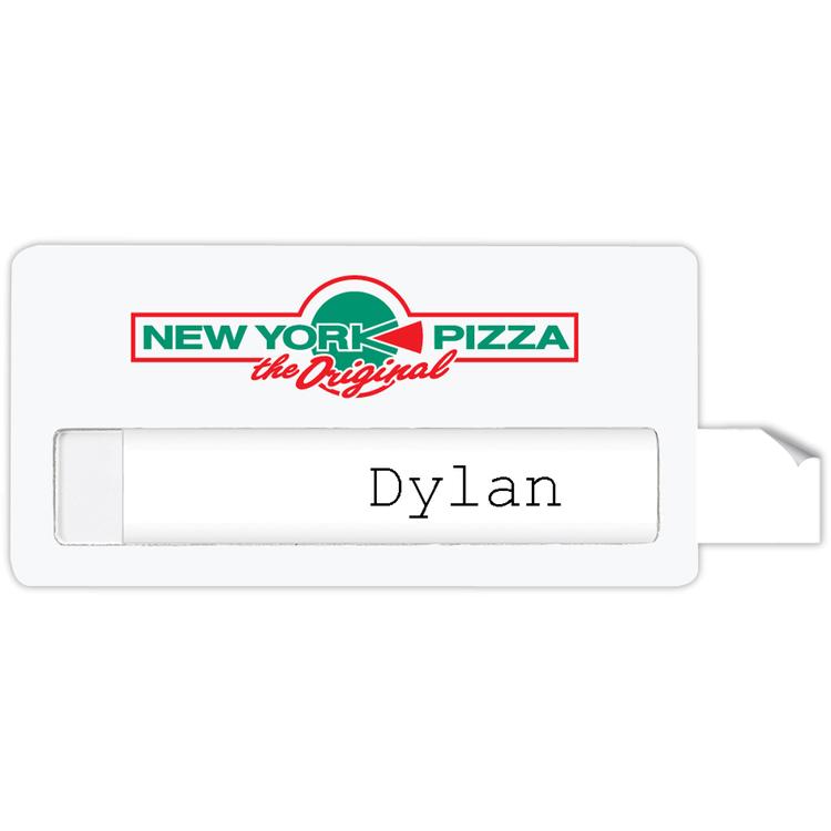 This badge comes with a full color imprint on white plastic. This window badge is the perfect option for the high turn-over workplace that desires a professional image as their workforce changes. It comes standard with a jeweler's pinback attachment & includes enough paper inserts & plastic covers to get all your badges on the floor right away. Features a 1/2" (h) window for interchangeable names. Additional attachment options are available. Insert sheets contain 30 perforated inserts per sheet.