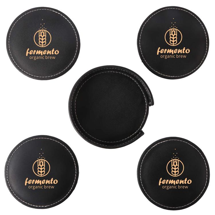 Benson 4 Pc. Bonded Leather Coaster Set in Holder