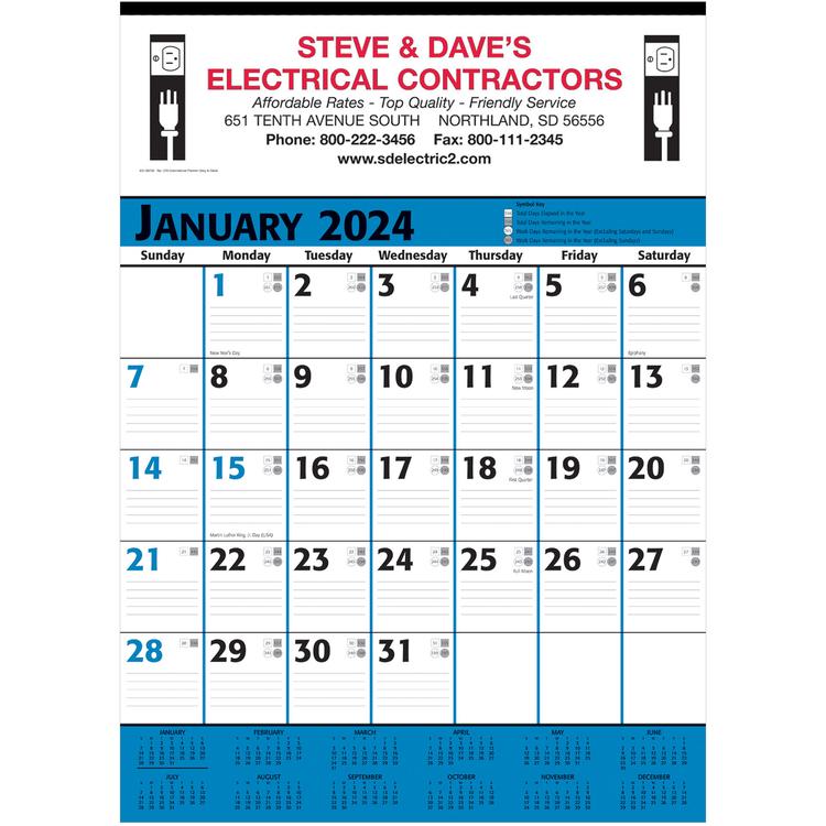 Commercial Planner Wall Calendar - Blue & Black: 2024, 2+ Imprint Colors
