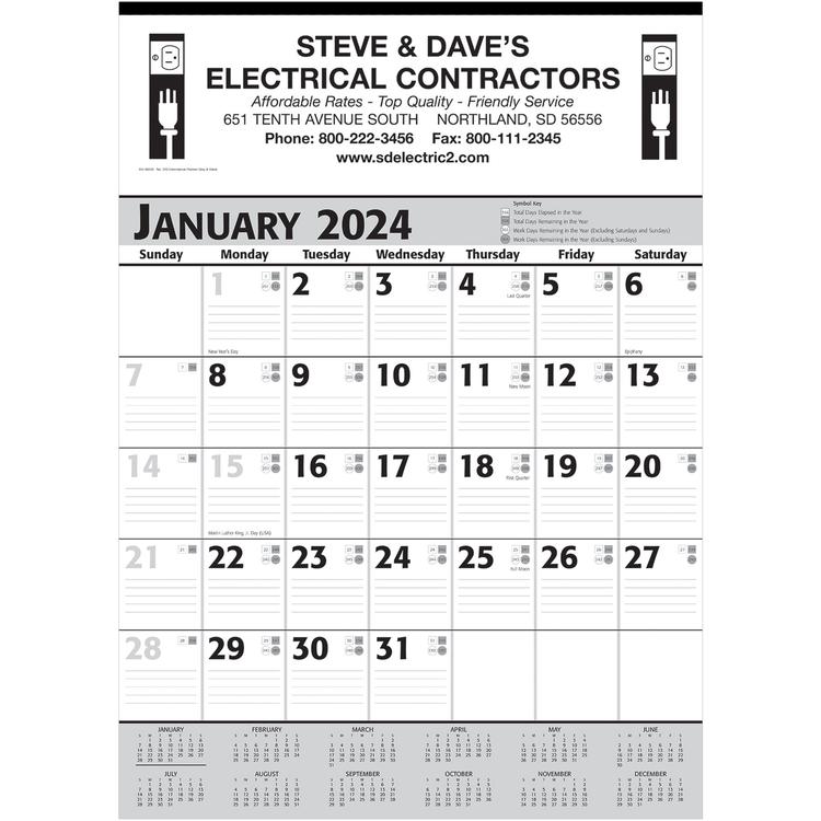 Item Question: CAL370 - Commercial Planner Wall Calendar - Grey & Black: 2024, 1 Color Imprint