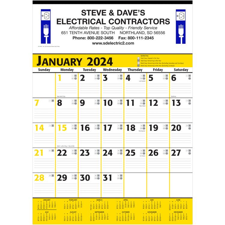 Item Question: CAL3712 - Commercial Planner Wall Calendar - Yellow & Black: 2024, 2+ Imprint Colors