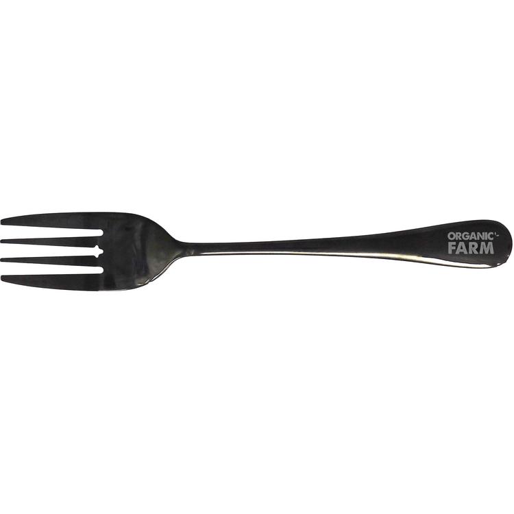 The Eclipse stainless serving fork is the perfect sized serving utensil for everyday use or a special occasion. The fork is made from 18/0 stainless steel with a trendy black PVD mirror polished finish. The laser engraved imprint shows off any logo in a high contrasting white. It is FDA compliant, dishwasher Safe. Make it a set with the Eclipse Serving Spoon in our HW87SS.