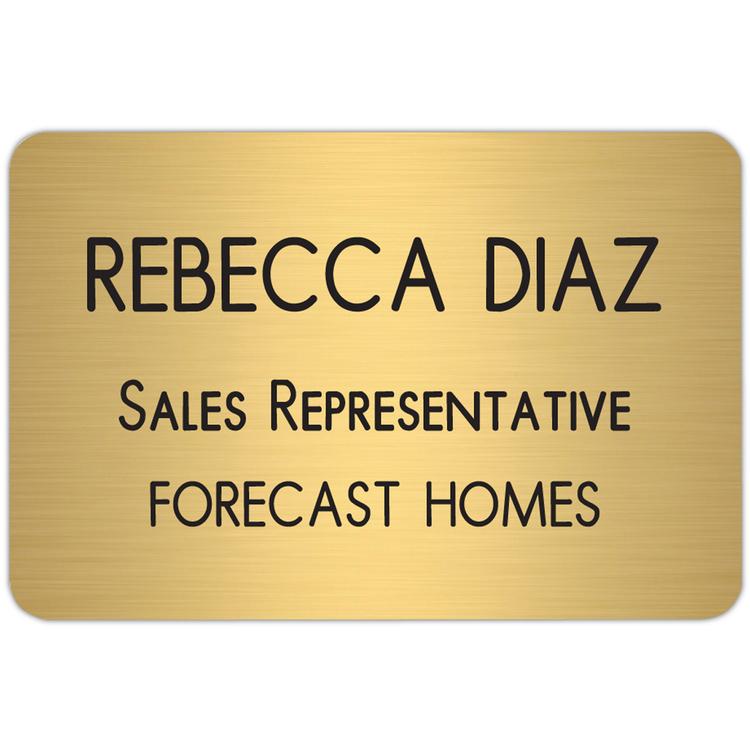 The Los Angeles Brass name tag is the perfect metal badge option for a clean look. Featuring engraved and oxidized personalization as the only decoration, this is a quick and classy way to identify employees. It is perfect for companies with logos in transition. The base cost includes 3 lines of engraved and oxidized personalization, round corners, and a jeweler's pinback attachment, but we offer a variety of options including alternate attachments . Add a protective polydome to extend the life and enhance the look of this piece. Utilize our Badge Warehouse program to order in bulk and release as needed. This badge cannot have an engraved logo.