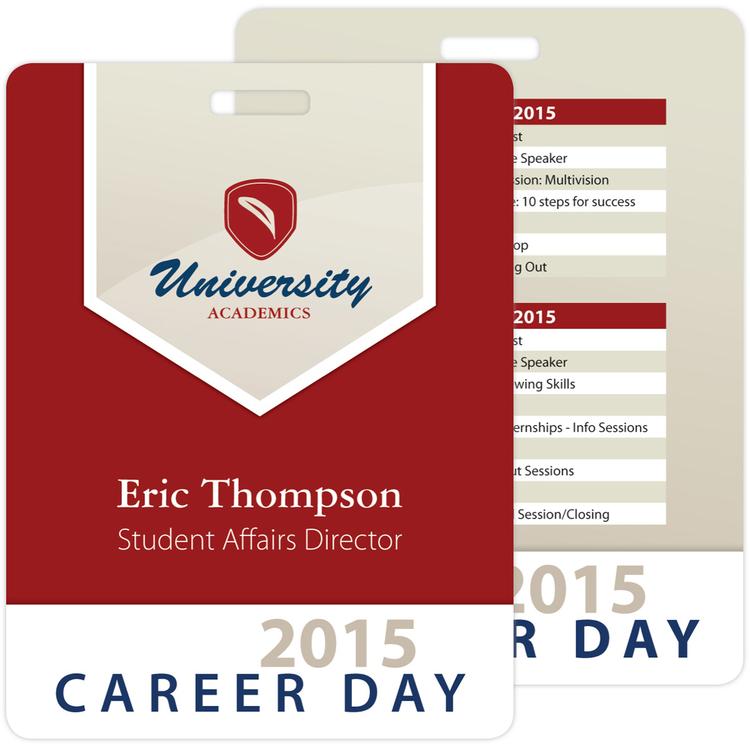 The Nashville name tag is your solution for a professionally personalized badge you can wear for multi-day events, or for normal everyday use. Featuring full color graphics on two sides and up to three lines of personalization on one side, with a slot and blank lanyard attachment, it gives a lot of bang for its buck. The .030 plastic is glossy laminated on both sides. Utilize our Badge Warehouse program to order in bulk and release as needed. Feature variable copy on one side and consistent (static) copy on the 2nd side. Your order must be noted for 2nd side or it will be blank.