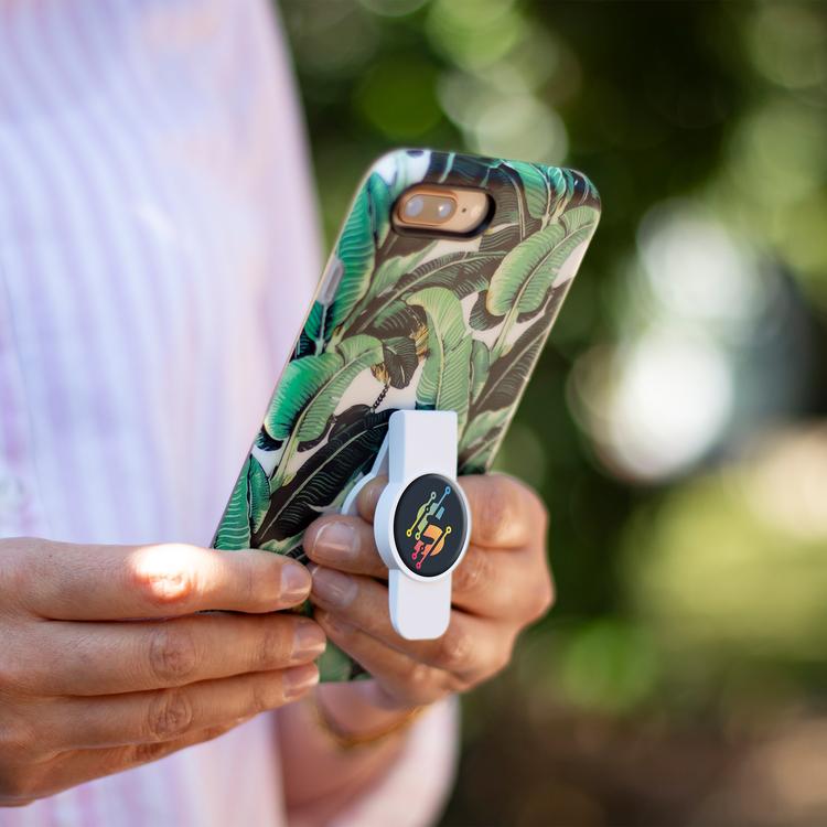 The phone stand sticks to the back of your phone, vertically or horizontally, to prop up your phone or for ease of holding. The full color domed decal imprint will command attention.
