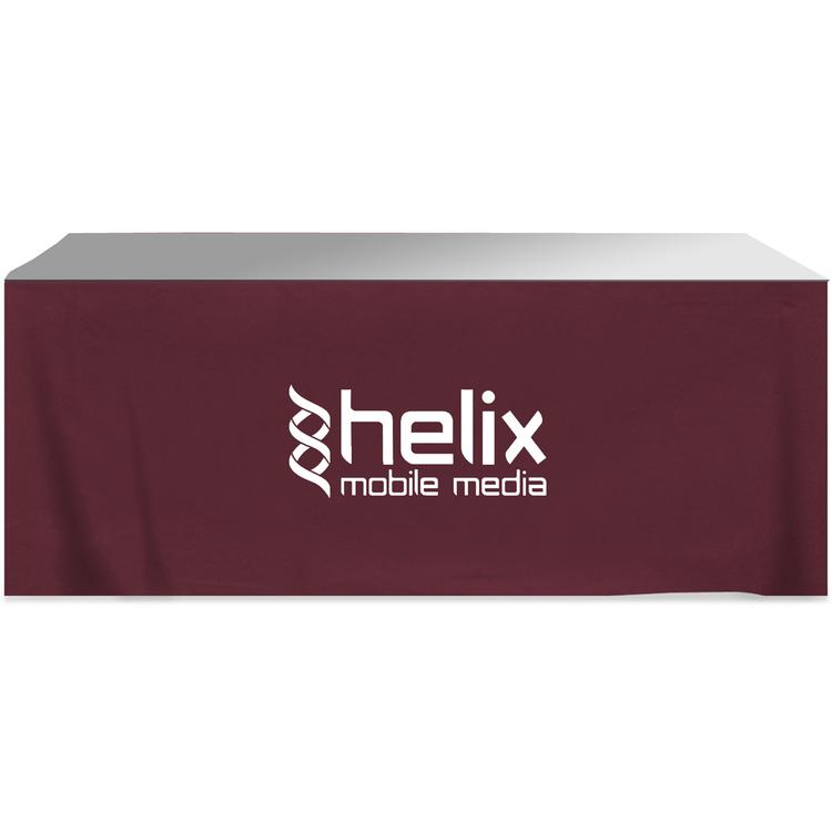 Skirts four sides, no top. Table skirts are an easy and effective way to display your logo on any size table. Table skirts come with hook and loop sewn around the top edge and hook and loop clips to fit your table. Beacon table skirts are made with a 65/35 blend of poly/cotton twill and a wide range of colors. They are finished with a rolled hem. Fits Table Size: 72" (w) x 29" (h) x 30" (d). Textiles: Differences may occur in fabric weight, fabric finish, color and overall size of the finished product. These variations are considered acceptable. Made in the USA with over 50% US parts.