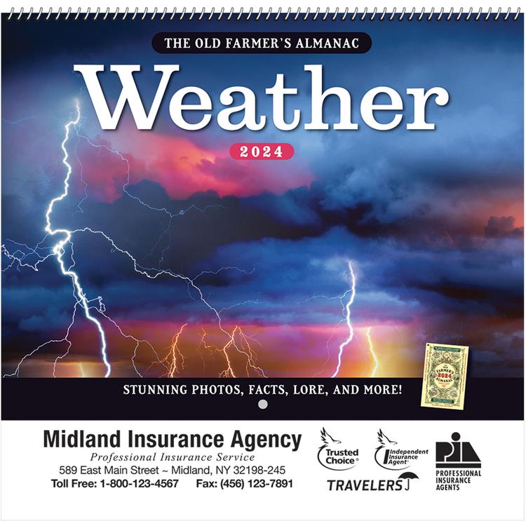 These amazing images of weather phenomena will get your interest. The calendar also includes some fascinating weather related information. Your customers will welcome the charm, wit and useful information that comes with these thoughtfully designed wall calendars from the archives of The Old Farmer's Almanac®. Break from the traditional designs offered by others this year and promote your business with a gift that will truly be appreciated and remembered. Features: 13 months (December-December), US Federal Holidays and Canadian National Holidays marked.