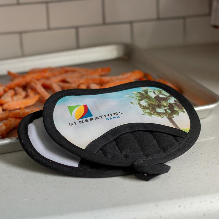 The full color dye sublimated imprint will command some attention. The back side is a quilted silver heat-resistant back with the front being 2mm neoprene. The pot holder has been tested and passes the ASTM D 1230-2017 standard flammability test. It has a convenient hanging loop. It's the perfect size for use in the microwave. Third party tested to withstand temperatures up to 500 degrees Fahrenheit.